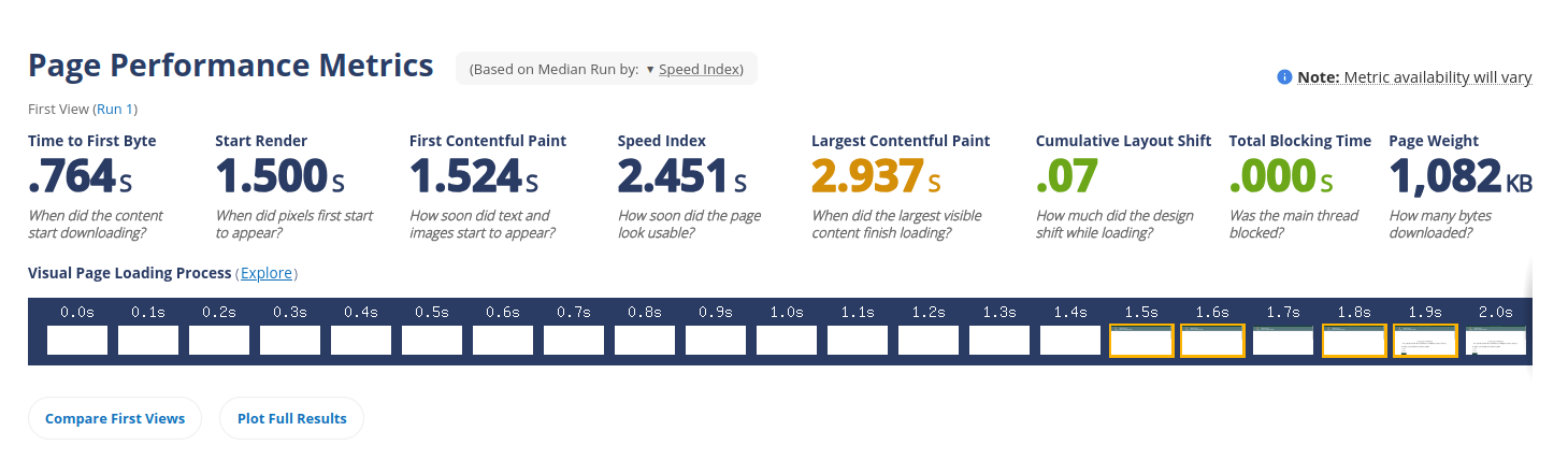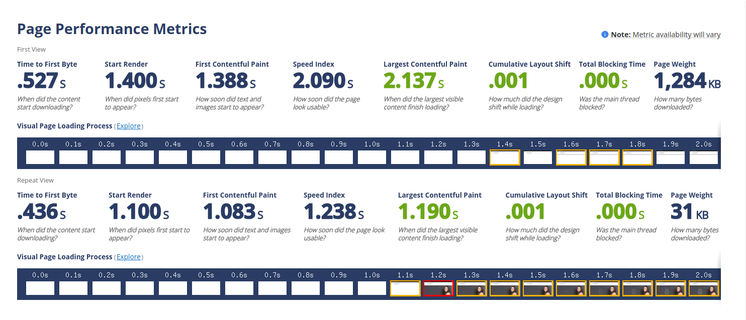 Testing confirmed faster server response and visual rendering after migration, with stable layout behavior and minimal variance in page weight.