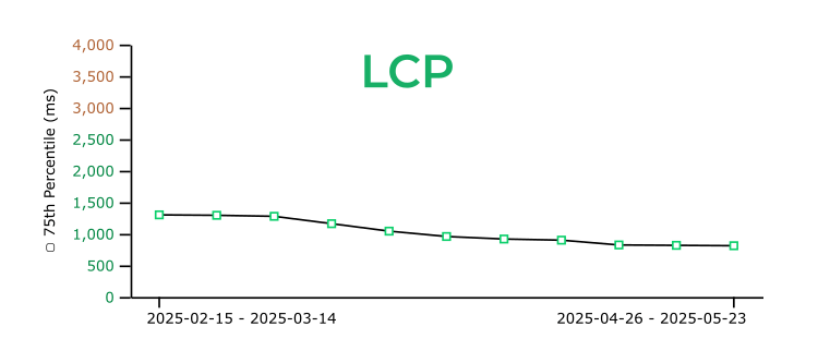 | Largest Contentful Paint | 1301 ms | 799 ms | >38.6% faster |