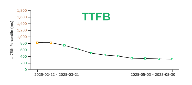 | Time to First Byte | 820 ms | 326 ms | ~60.3% faster response time |