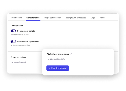 Reduce HTTP requests and speed up loading across your entire site, by combining multiple JavaScript and CSS files into a single bundle. Smart, hash-based concatenation, for faster delivery without breaking your site's layout.